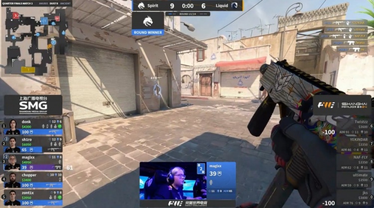终局之战magixx独自摸出A门绕到中路带走总监,TL两人冲B未果遭到团灭,Spirit最终以13-11战胜TL,总比分2-0击败对手晋级上海Major四强。