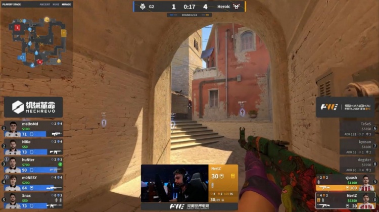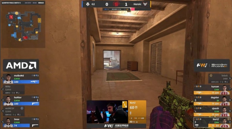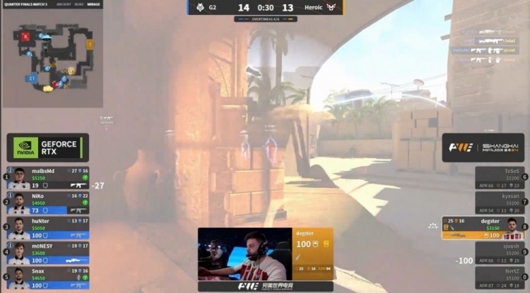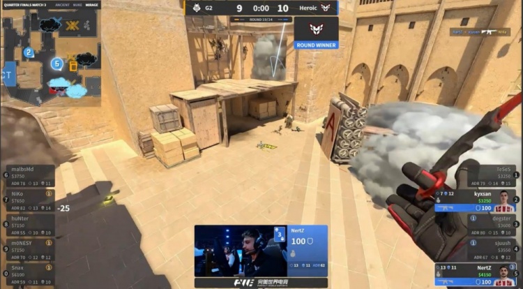 加时第五局NertZ摸下水道去中,malbsmd从A1杀出绕后,Heroic从四人集结B小去B,hunter正面三杀,Heroic13-16G2。