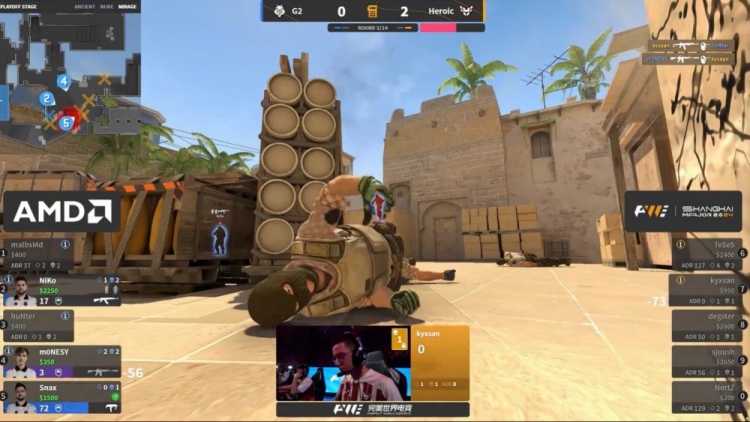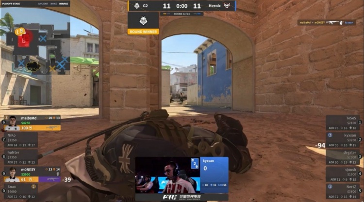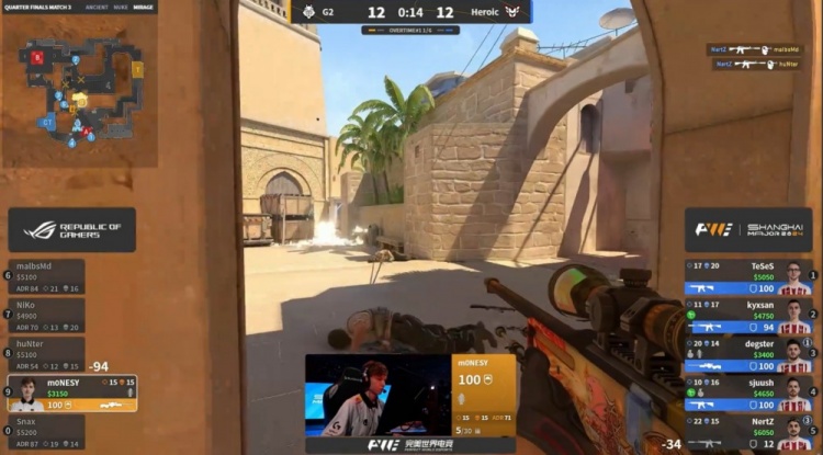 易边再战,加时第四局malbsmd独自看A,随后Monesy回A防守,kyxsan中路走拱门拿信息,monesy大狙看住拱门,A二楼出人被缴,Heroic冲A未果被团灭,Heroic13-15G2。