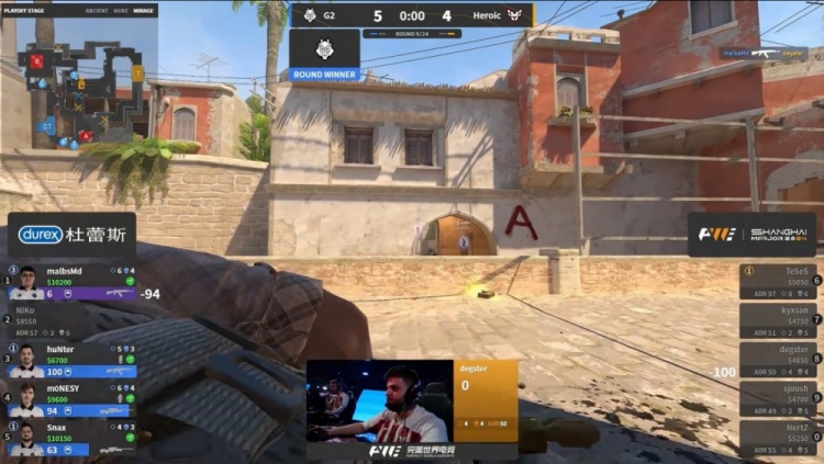 第五局degster中路对狙带走monesy,Heroic五人转A下包,G2三人保枪,Heroic4-1G2。