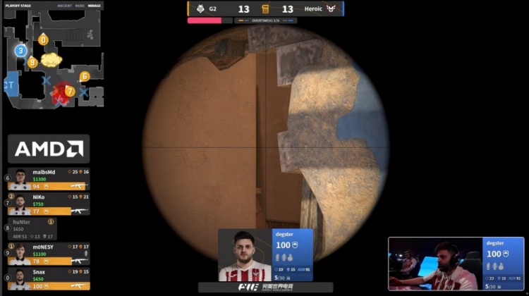 加时第一局,malbsmd依旧下水道去中路,degster大狙在B小看中路击杀snax,niko在vip被NertZ击杀,G2三人拱门去A,NertZ三杀到手,Heroic13-12G2。