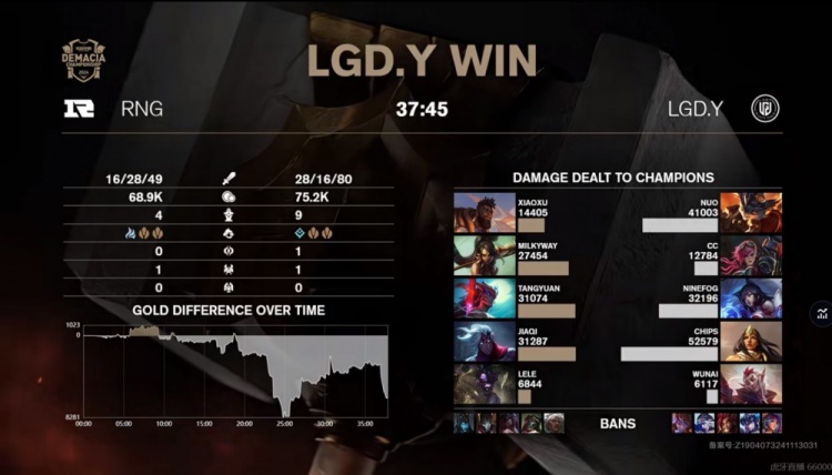 LGD.Y:上单Nuo、打野cc、中单Ninefog、下路chips、辅助WuNai