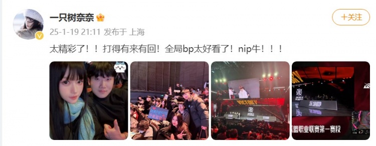 >树奈奈晒观赛现场照:Doinb后援团,NIP牛!!!