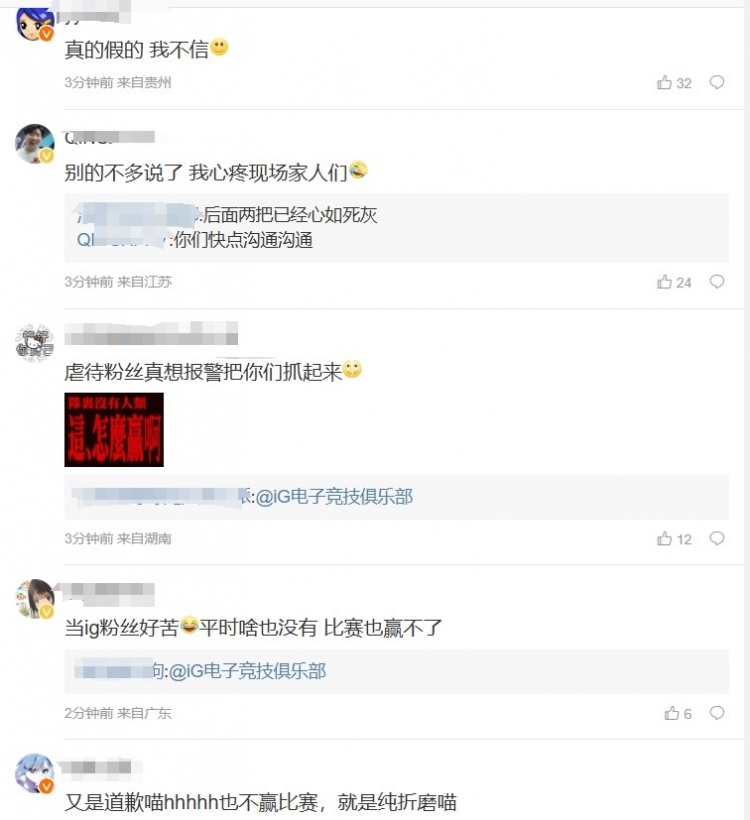 iG粉丝看官博发文道歉:虐待粉丝真想报警把你们抓起来!
