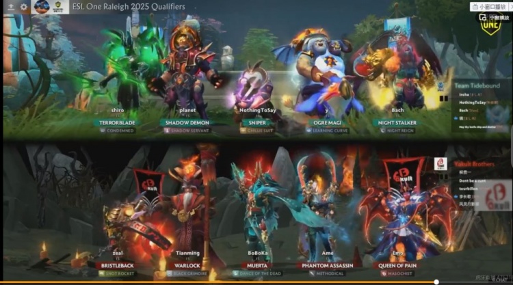 天辉Tidebound:shiro恐怖利刃、planet暗影恶魔、NothingToSay火枪手、y'食人魔魔法师、Bach夜魔