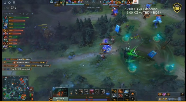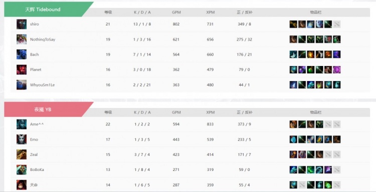 首局比赛YB对线期就处于劣势,y队蓝胖下路对线拿下双杀之后zeal钢背兽无限被压制,Tidebound团战有夜魔保护给足了NTS火枪输出空间,十来分钟就拿下超过5K的经济优势!虽然YB也抓住夜魔大招CD机会切后排一度打回经济差,但是几波关键团Emo女王猛空技能,Tidebound在肉山团大获全胜之后带盾上高,一波团灭YB赢下首局!