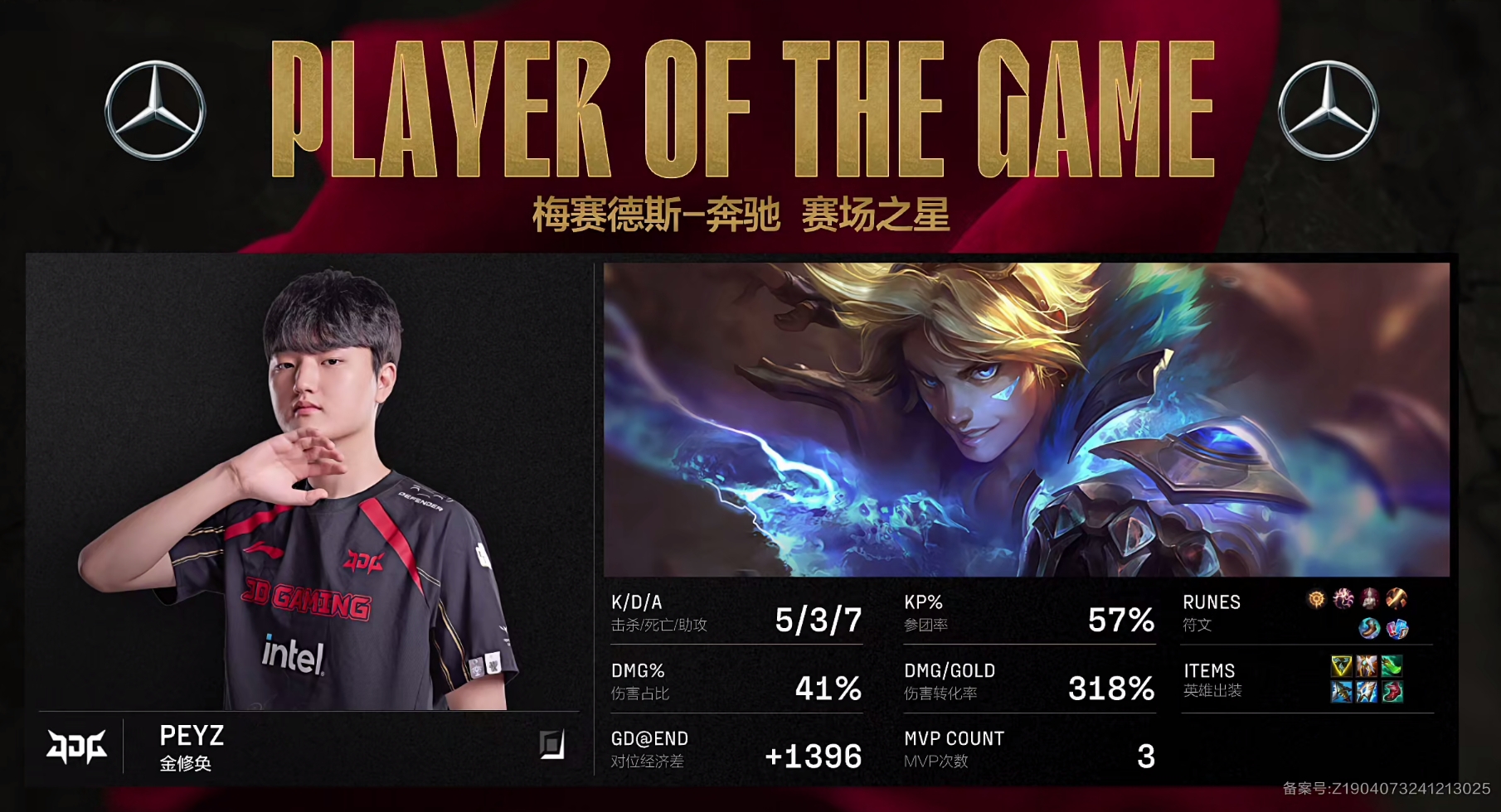 >证明了自己!JDG韩援Peyz决胜局EZ拿下MVP 打出夸张的318%伤害转化率