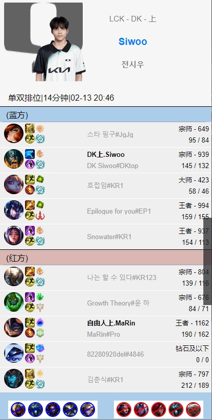DK上单siwoo疑似在看了偶像Zeus的赛场表现后,火速在韩服排位开了一把奥拉夫。
