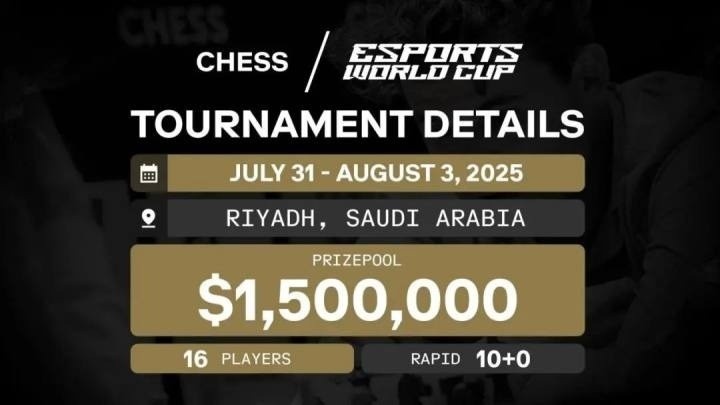 2025电竞世界杯将于7月31日至8月3日在沙特阿拉伯首都利雅得举办,国际象棋作为全新加入的比赛项目。
