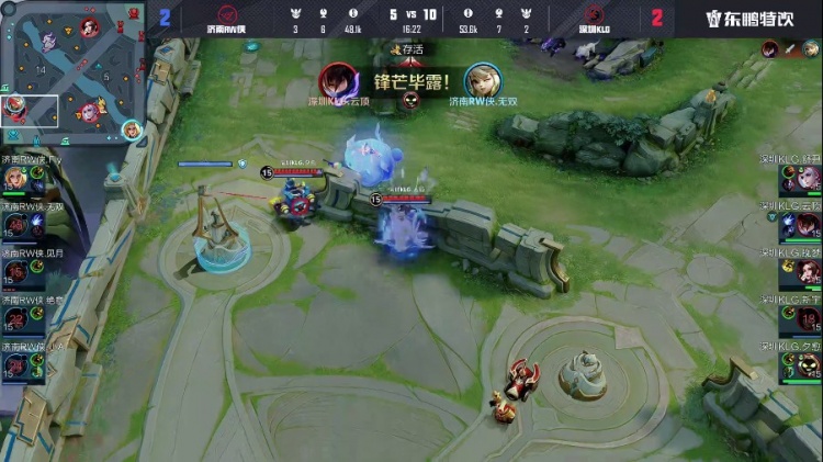 【10:20】中路KLG直接强开,亚连大招给RW众人挂重伤,澜直接进场收割,KLG击杀RW三人!