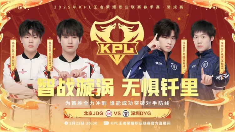 直播吧2月22日讯 2025KPL春季赛今日压轴比赛是由北京JDG对阵到深圳DYG!