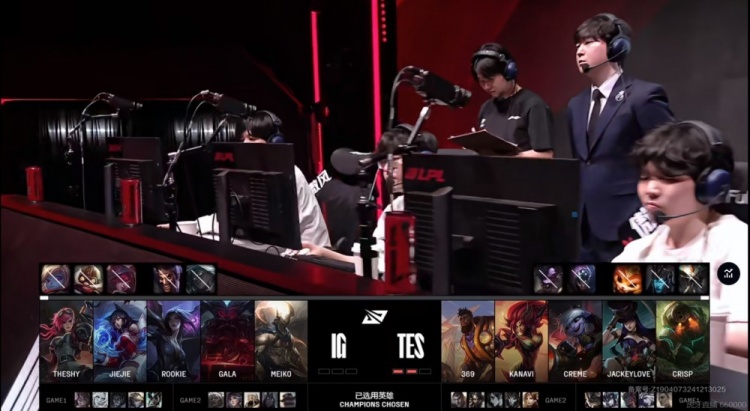 TES:上单369、打野Kanavi、中单Creme、下路JackeyLove、辅助Crisp