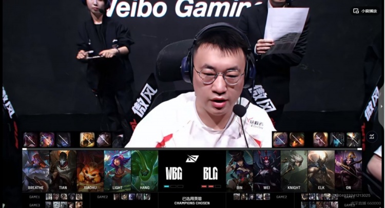 BLG:上单Bin、打野Wei、中单knight、下路Elk、辅助ON