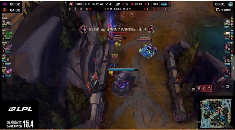 【15:57】Breathe纳尔又被BLG三人越塔强杀连续阵亡!WBG先锋团打残Wei潘森,收下峡谷先锋!
