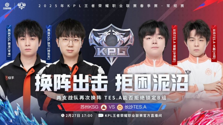 直播吧2月27日讯 2025KPL春季赛今日第二场比赛是由苏州KSG对阵到长沙TES.A!