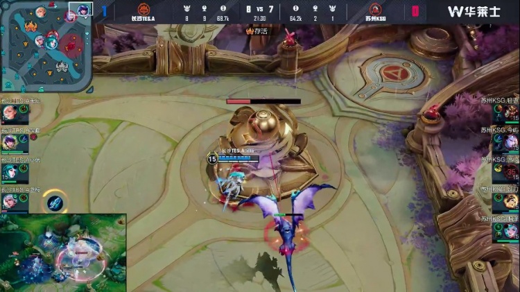 【21:30】双方围绕龙王想要争夺,女娲被先手击杀,马超抓到机会直接下路带着兵线轻松推掉水晶拿下胜利!
