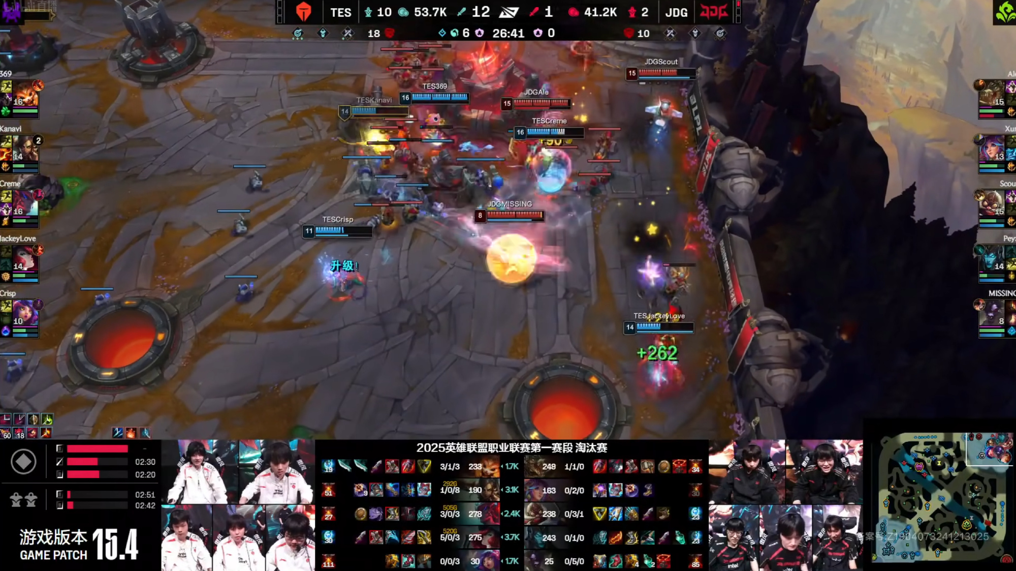 JDG第二局三线哑火,TES更是打出了12:1的人头比;对位方面,Scout落后2.4k,Peyz落后3.7k,Xun落后3.1k。