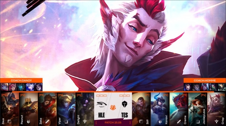 第一局前期Delight游走中路帮助小花生吃掉Creme一血,Kanavi持续去上联手369击杀Zeus,河道团战Viper跟上人群中点掉残血Creme,Delight牛牛留住刘神让Zeka吃头,HLE打出0换5团灭TES,经济领先3k。