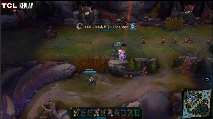 【11:31】下路haichao吃线被iG三人包夹,TheShy拿到人头。随后LNG三人中路推进带走Meiko人头。