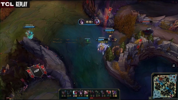【6:40】巢虫团,AKi斯卡纳冲锋进场抢到一只巢虫,OMG的2-1!OMG全员集火AKi斯卡纳之后Leave维鲁斯交闪躲过永恩技能,配合队友先切死了Starry卡莎!残局ppgod牛头控制拉满,OMG虽然可以击杀NIP野辅,但是NIP的双C收割了战场,打出2换3!