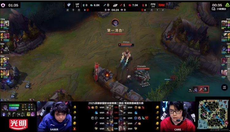 直播吧3月30日讯 2025年LPL第二赛段来到登峰组晋级赛的第一天,FPX将要和UP争夺第一个晋级登峰组的名额!
