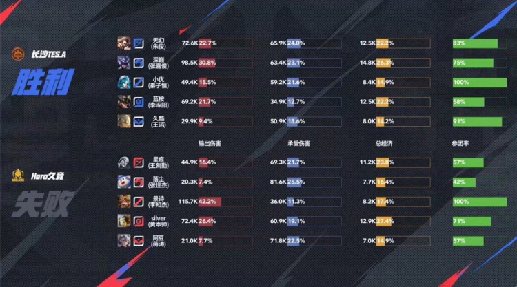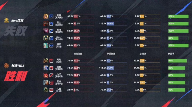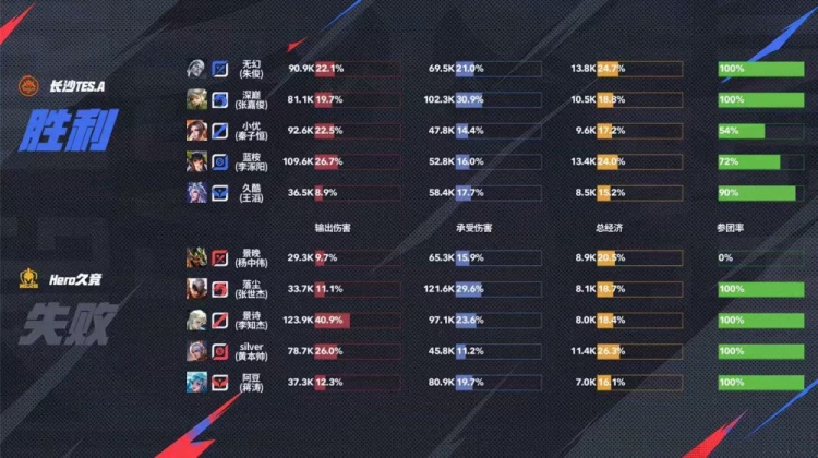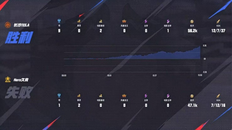 Hero前期控下暴君但是被TES击杀多人,双方中期互换人头难舍难分,十分钟TES一波强行rush暴君帮助队伍拿下优势,后续TES通过三路兵线运营成功破掉三高,无幻曹操一波三杀成功终结比赛拿下胜利!