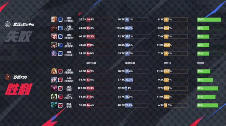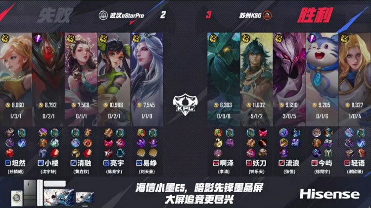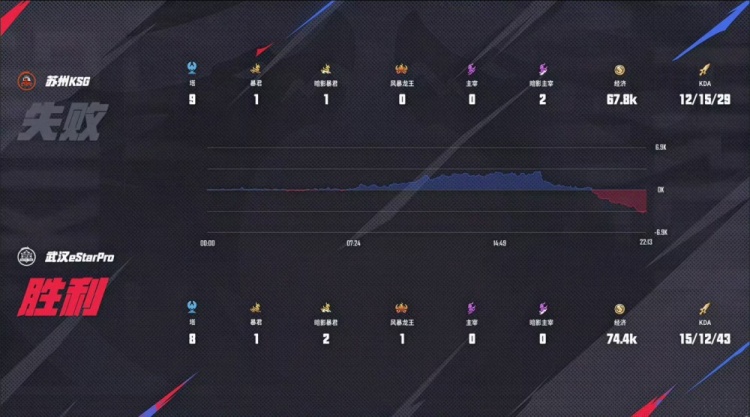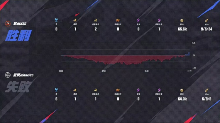开局eStar拿到优势,后控下中立资源,十分钟双方互换龙后,后续KSG持续打掉点成功将比赛拖到20分钟,21分钟KSG抓到eStar一波关键掉点成功帮助队伍赢下胜利!