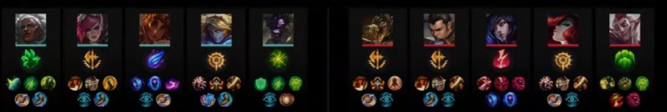 蓝色方BLG:Bin安蓓萨、Wei蔚、knight岩雀、Elk伊泽瑞尔、ON牛头