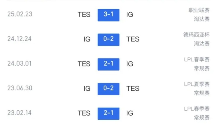 >iG终结队史对阵TES的连败记录!近两年五次交手TES全败