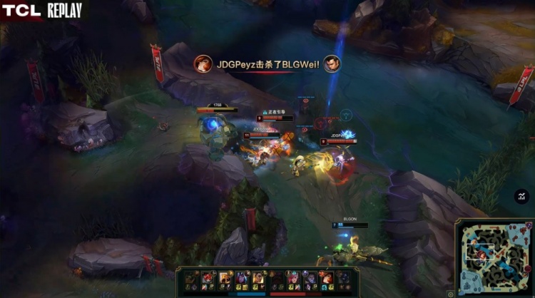 后期BLG团战稀碎,JDG打出0换3回头吃掉大龙,经济优势来到8k。最终JDG下路推进冲上BLG高地打出0换3,BLG双C无力防守,JDG推平BLG基地先下一城。