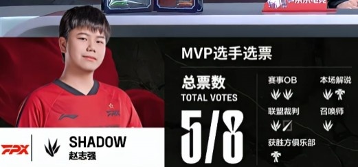 红色方FPX:sheer赛恩、Shad0w赵信、Care岩雀、Assum卡莉丝塔、Jwei烈娜塔