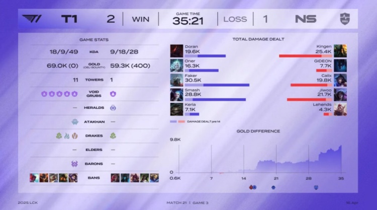 直播吧4月16日讯 2025LCK常规赛继续进行,今日首场比赛由T1对阵NS!