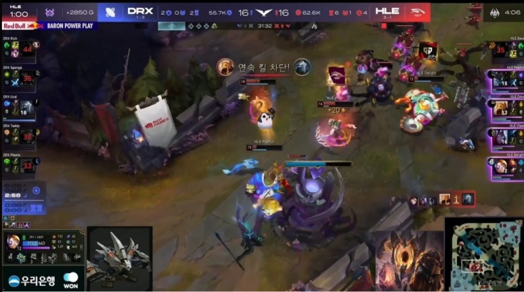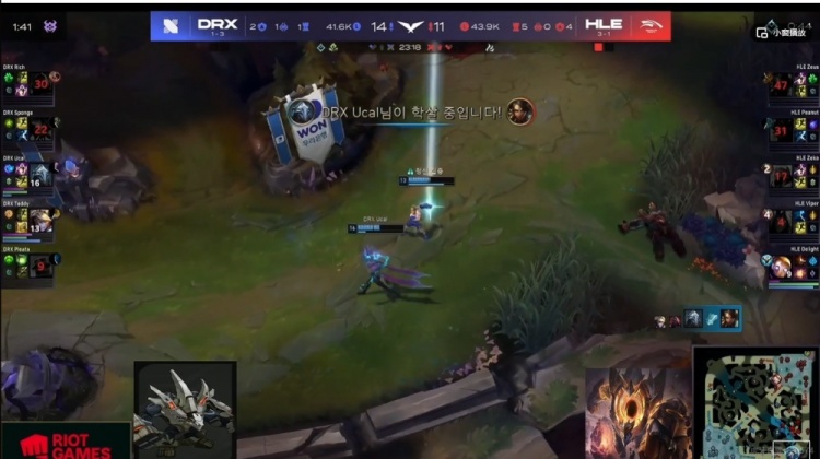 【13:32】DRX拿下第二条小龙!HLE接团Zeka沙皇推两个,强行打了个1换1之后拉开!