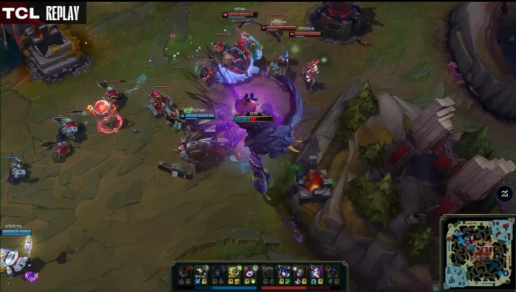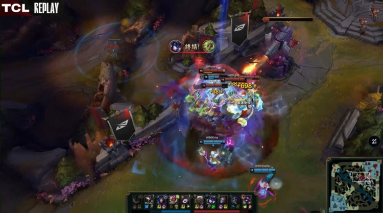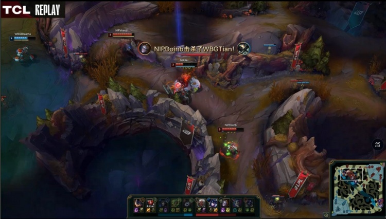 上路终极团战,小天蝎子过墙被ppgod牛头顶到Leave脸上,小天趁机开大配合Breathe兰博洒大开烤,Doinb发条人群空大,WBG打出1换4一波推平NIP基地拿到比赛胜利。