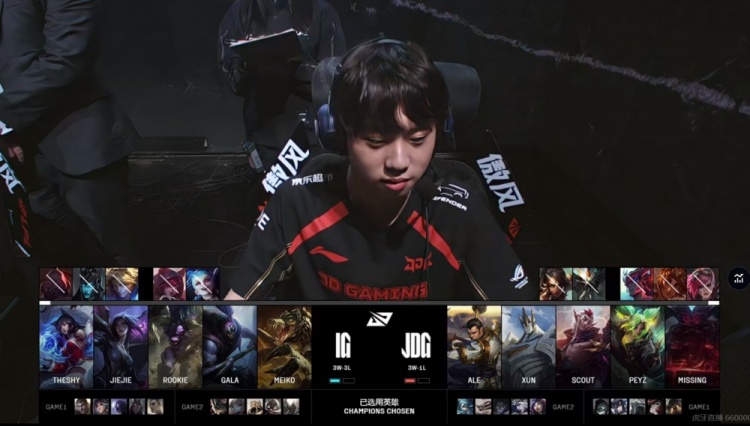 JDG:上单Ale、打野Xun、中单Scout、下路Peyz、辅助MISSING