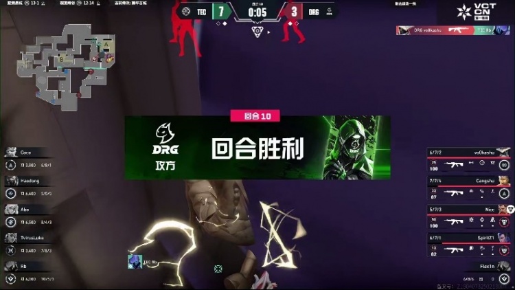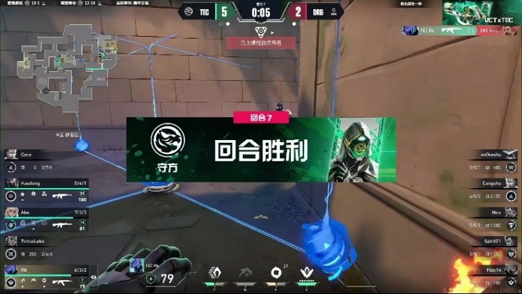 第七局:开局DRG利用幽影的TP成功偷到一人,但是DRG想要强行进点被钢索在点内直接接住三人,DRG的进攻被TEC完全接住,TEC拿下胜利!