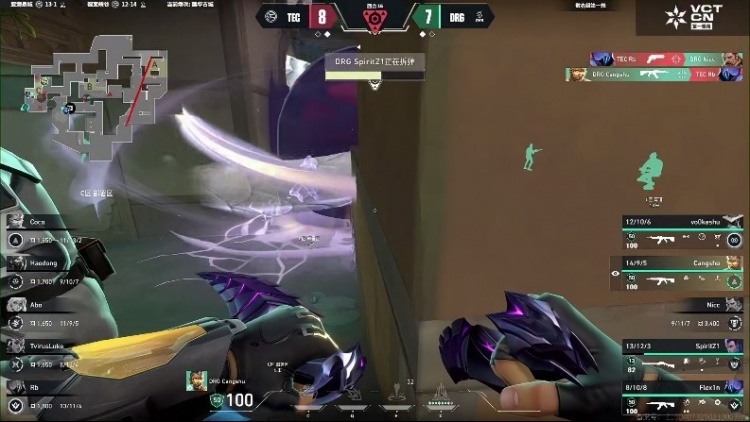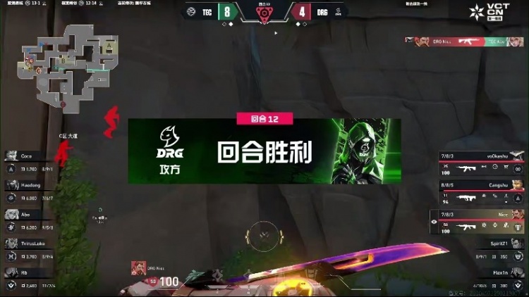 第八局:DRG开局选择进攻中路,但是TEC成功在点内接住,DRG进点直接被TEC全部化解,TEC成功再拿下一分!