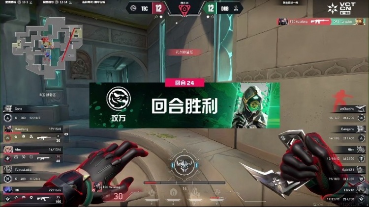第十二局:TEC开局在C点拿到信息后直接转到A点,但是DRG利用AB连成功收下TEC多人,DRG成功拿下上半场第一分!