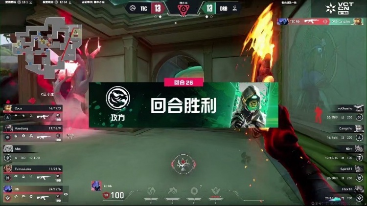第二十二局:TEC开局选择进攻A点,但是DRG也选择抢A点,DRG没有道具强行进A但是被DRG牢牢架住,DRG成功拿下胜利!