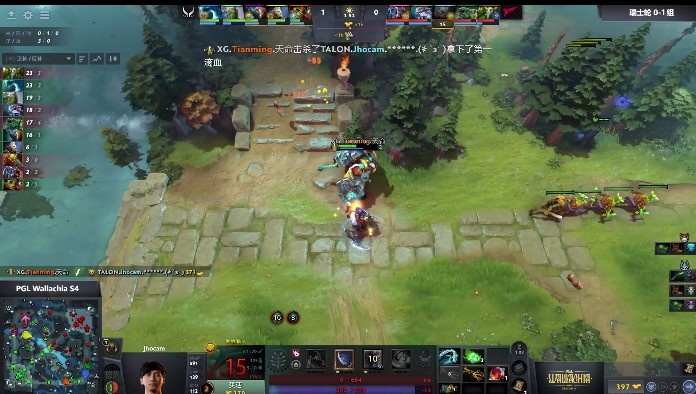 【10分钟】xm小小游走上路,Ws潮汐脸上回城过来,没想到XinQ百戏大王和小小的技能配合没有控住潮汐,被潮汐放出大招反留人,Jhocam赏金标记后输出,Natsumi先知飞过来支援,XG被打一波三人团灭,经济落后4K。