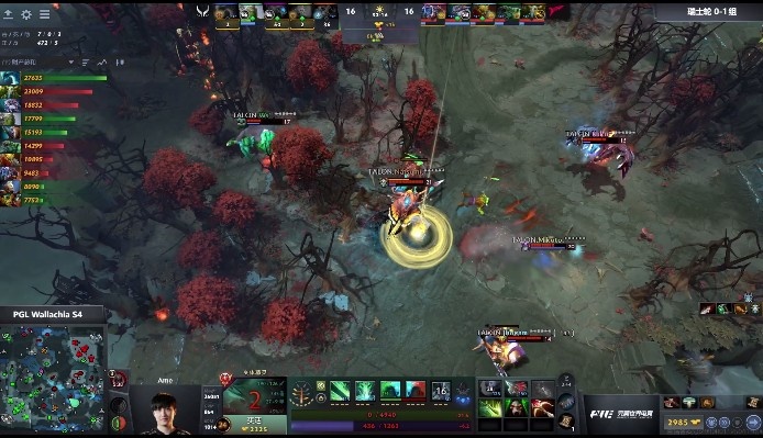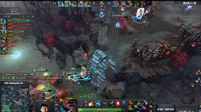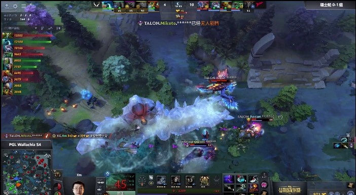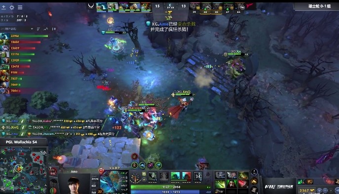 【27分钟】XG被破雾的瞬间,xxs马格纳斯跳上去弄到了Ws潮汐,潮汐开不出大招被秒,Ame水人进入乱杀模式,先踩大鱼人,再硬动手开着BKB的Natsumi先知,最后波到河道收割完成疯狂杀戮,将Talon直接打一波五人团灭,经济逆转。