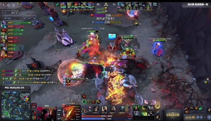【16分钟】双方爆发团战,这次shiro水人参战,planet光法拉人过来,先秒了9Class百戏大王,接着Bach沙王大刺留下Noone火猫,NTS小小山崩投掷拉满,将PARI打了一波四人团灭,拉回经济差距。