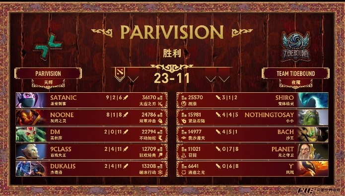 天辉PARI:Satanic圣堂、9Class百戏大王、Dukalis双头龙、Noone火猫、DM美杜莎。
