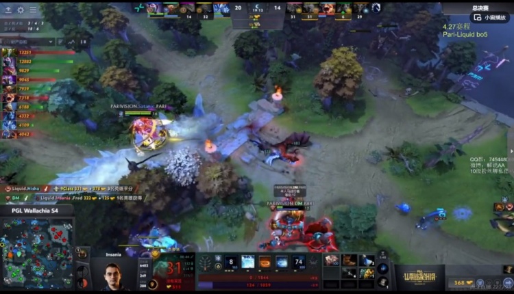 【31分钟】野区遭遇No[o]ne滚滚直接吃到先知框白给,Satanic的TA进场直接和m1CKe先知的盾1换1了!这波Liquid打出0换4,拆掉中路二塔+中路高地!再转下路!破掉了PARI两路高地之后撤退!双方经济差11K了!