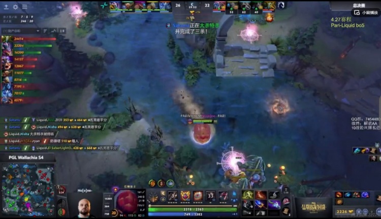 【35分钟】Satanic的TA下路被Liquid找到,自己BKB+TP但是被Liquid灌伤害直接秒了!Liquid开拆最后一路高地!No[o]ne滚滚开车但是被Nisha獣举到!正面SaberLight黑贤拉墙了四个直接毁灭了PARI的阵型!Satanic的TA倒下!PARI敲出了GG!