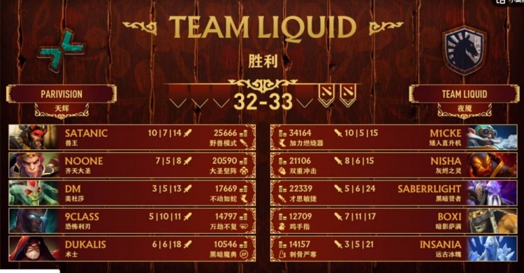 【35分钟】Liquid蹲经验符点秒掉了9Class的TB,随后PARI交出三个大招秒了Nisha火猫!Satanic兽王吼到飞机但是SaberLight黑贤拉墙三个成功解围!Satanic兽王倒了!Liquid打出1换3开打肉山!No[o]ne大圣想来看被Nisha火猫无影拳看到了!Liquid追击将他留住,正面m1CKe飞机还成功带盾!