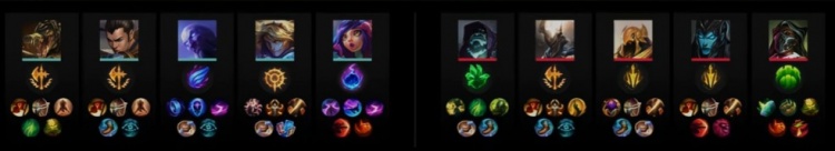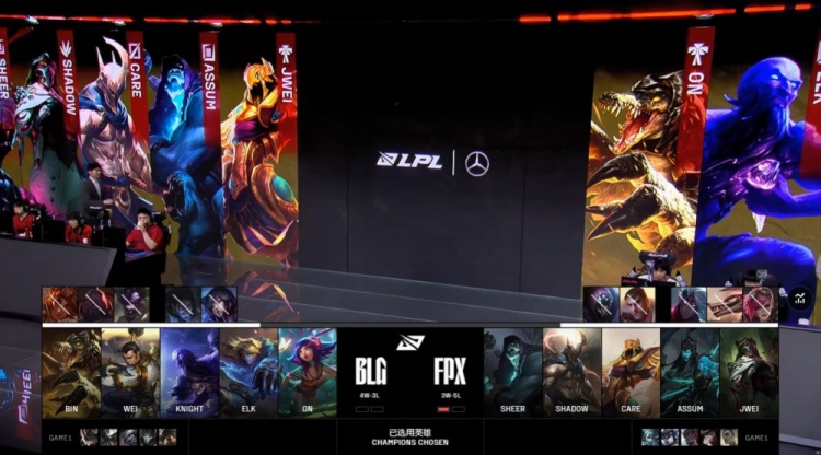 蓝色方BLG:Bin鳄鱼、Wei赵信、knight瑞兹、Elk伊泽瑞尔、ON妮蔻