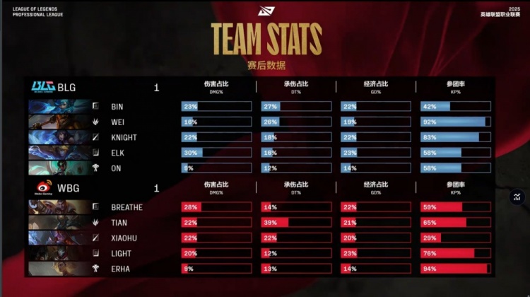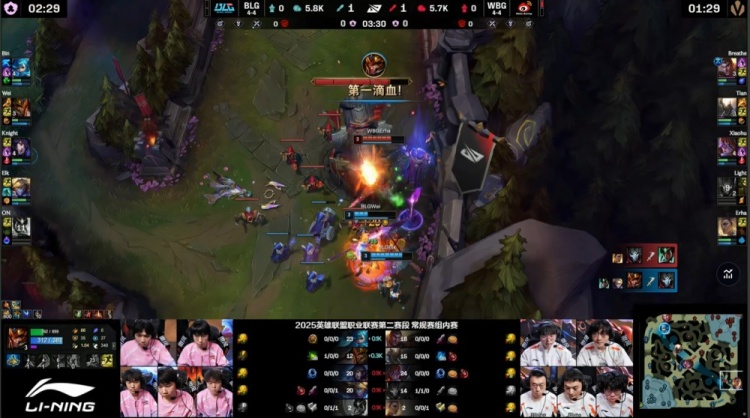 蓝色方BLG:Bin、Wei、knight、Elk、ON