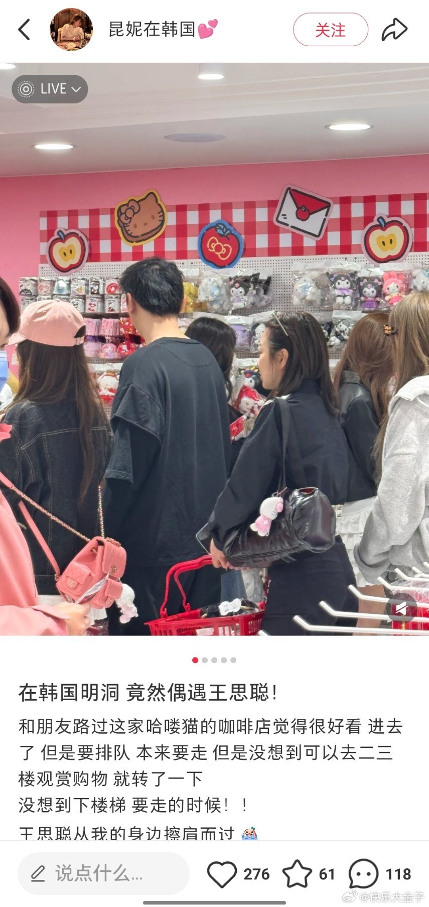 直播吧5月2日讯 近日,有网友在韩国明洞偶遇王思聪,其带着Meiko“前”女友邓子怡等几位女生逛三丽鸥。