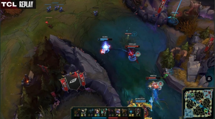 【6:38】上路混战,Light被beichuan蝎子石子砸死,小天波比交出闪现,BLG打出0换1。
